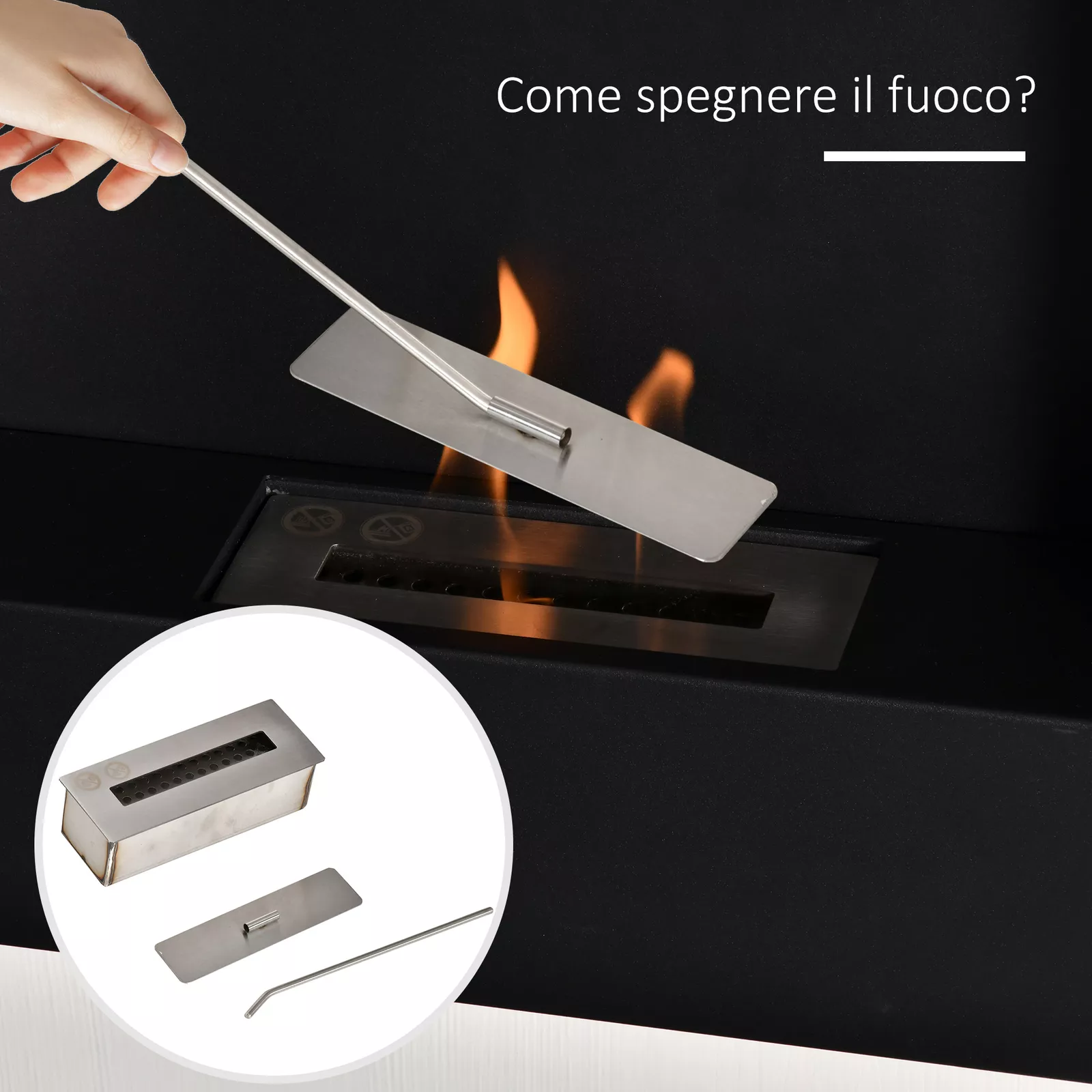 Specifiche tecniche ● Colore: Argento, Nero ● Materiale: Acciaio, Acciaio inox ● Dimensioni generali: 72L x 11P x 72Acm ● Capacità serbatoio: 0.7L ● Area riscaldata: 20㎡ ● Efficienza termica: 6100BTU ● Concentrazione d’alcol: superiore a 95% ● Accessori: Coprifiamma, Viti a espansione Descrizione Il camino a bioetanolo da parete HOMCOM è la scelta perfetta…