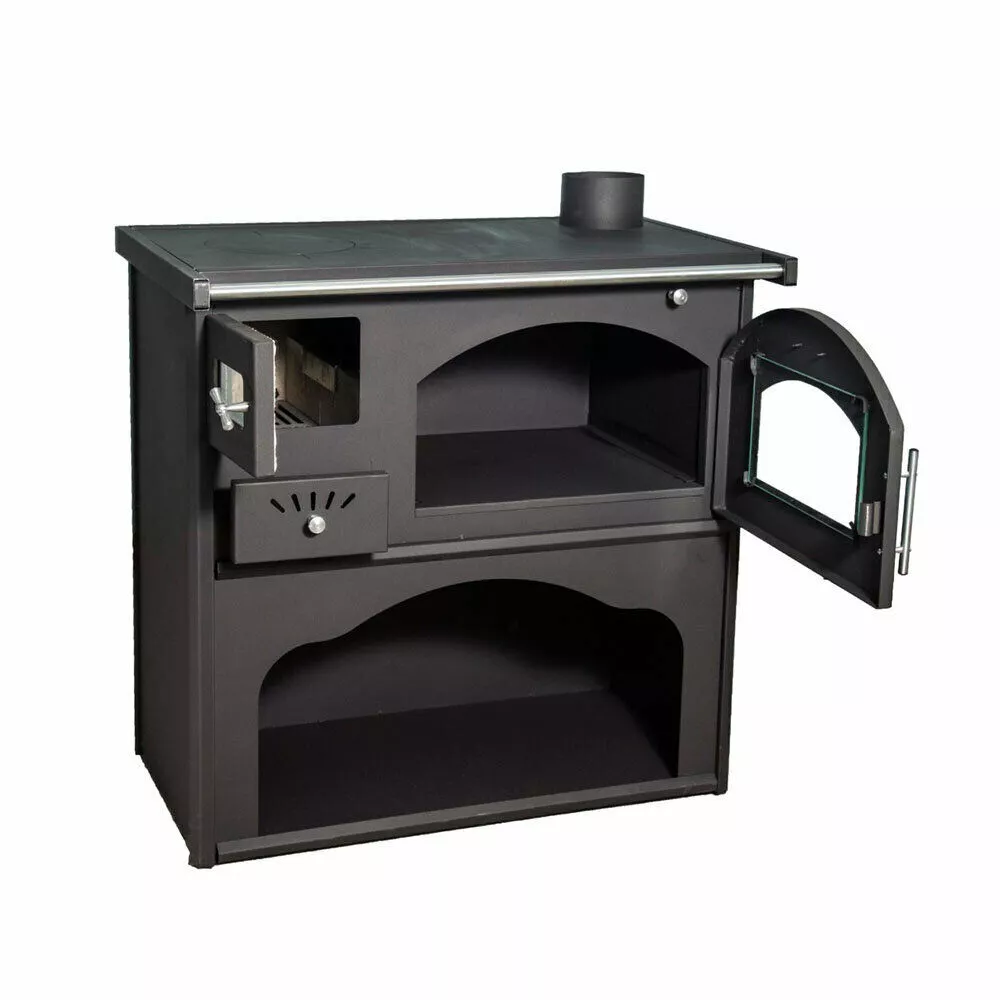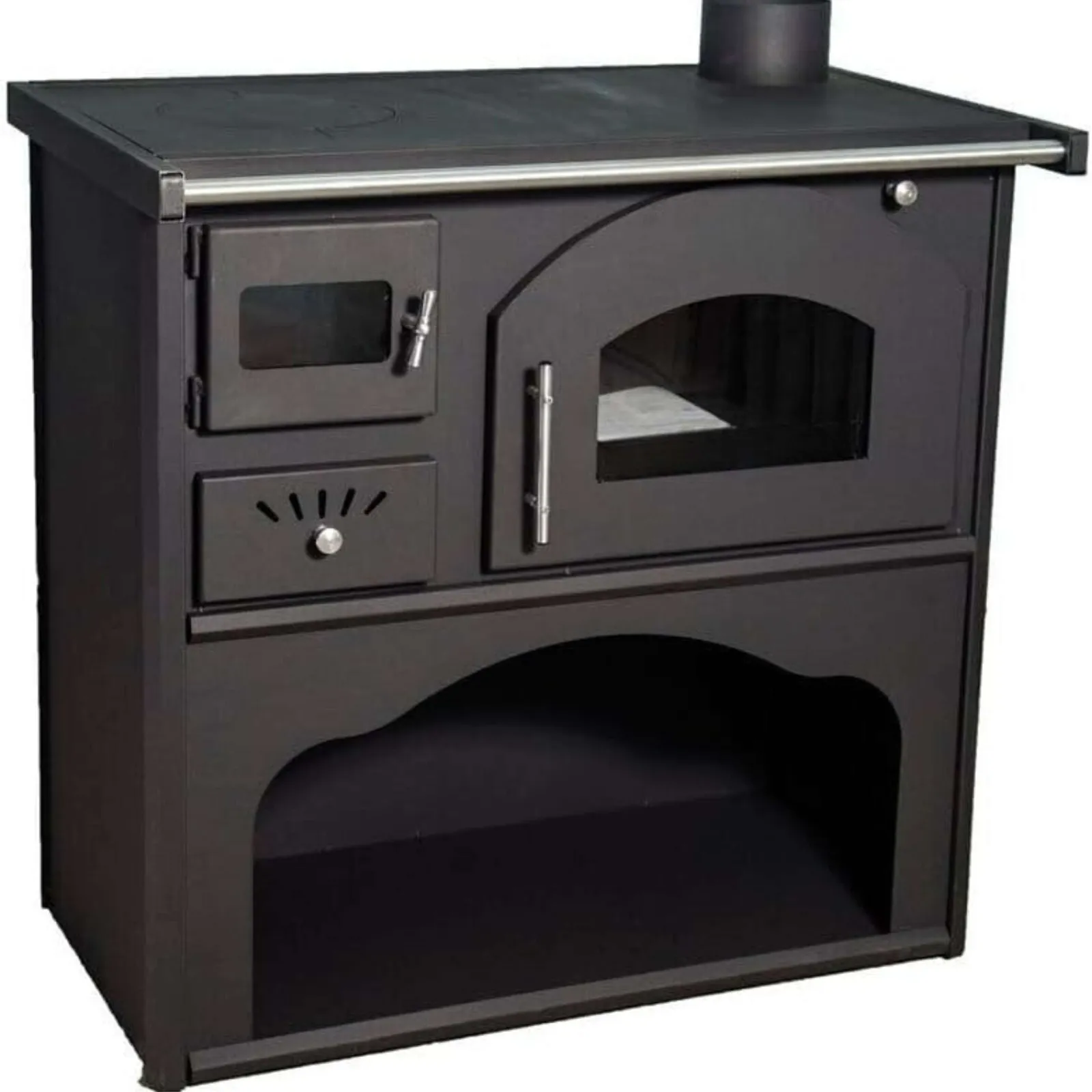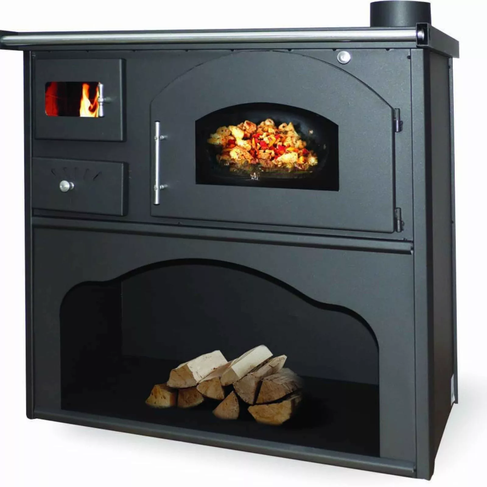 Colore NERO OPACO. Il forno è un vero e proprio “forno a legna”, dotato di termometro, efficiente e funzionalissimo.